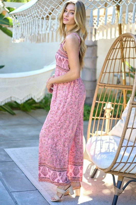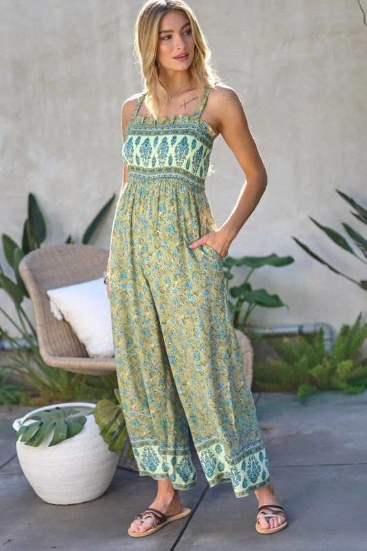 FLORAL SMOCKED DETAIL WITH RUFFLE JUMPSUIT.