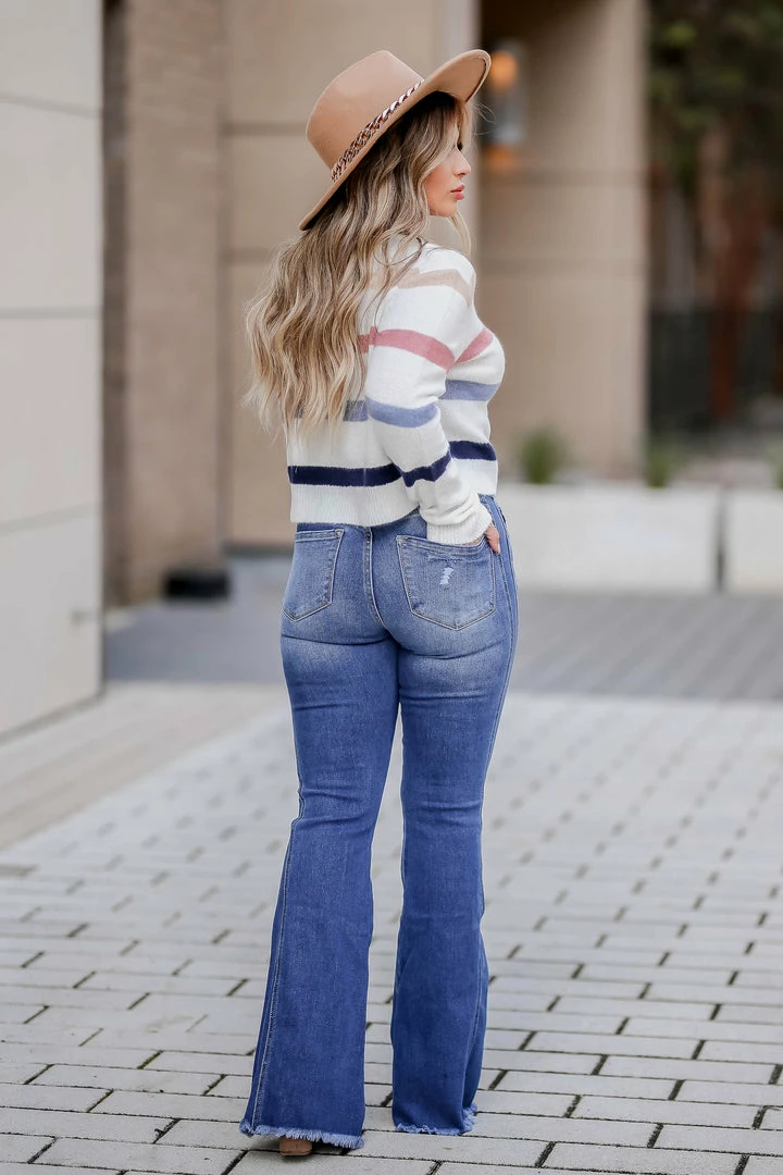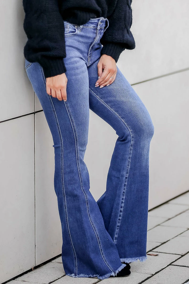 Add some flair to your flares with the Arabella Jeans! The unique double seam detail on the side is the eye-catching detail that makes these blue jeans anything but basic.