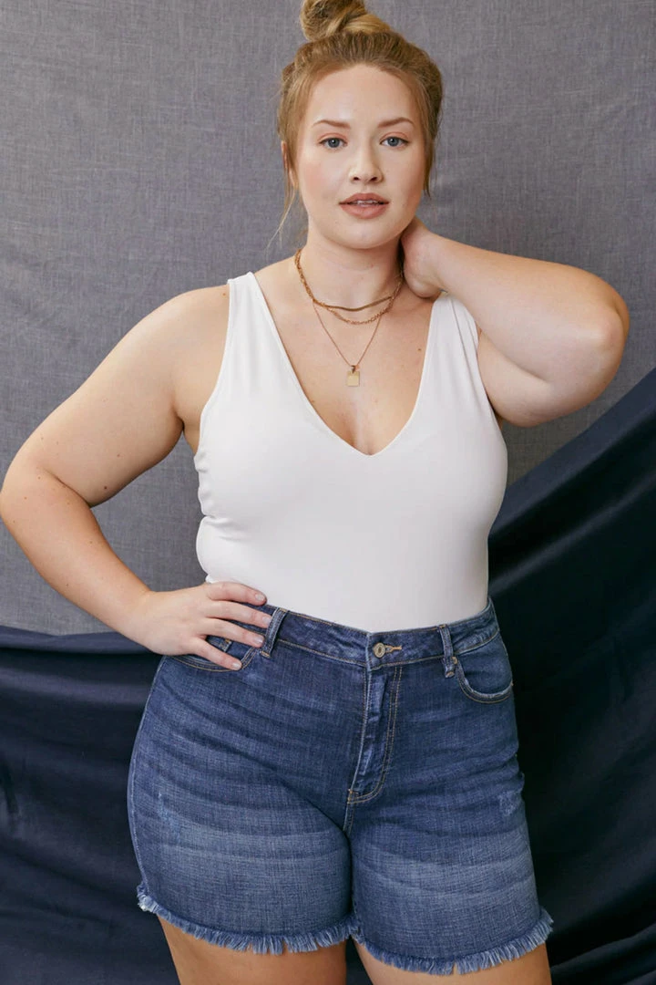 If you love a denim short but still want a little length, the Evelyn Shorts are the ones for you! You’ll want to live in these comfortable shorts all season.Â