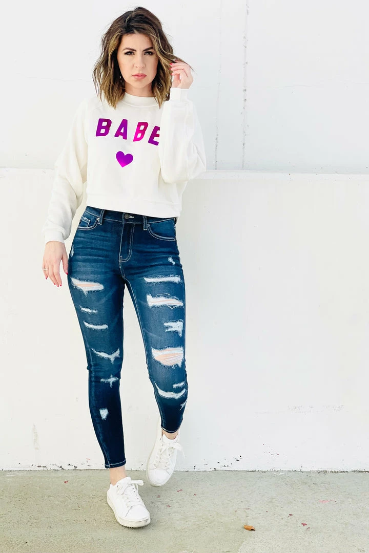 These jeans are the definition of a classic distressed skinny! They go perfectly with your favorite graphic tees and hoodies, or they can help dress down a cute cami.Â