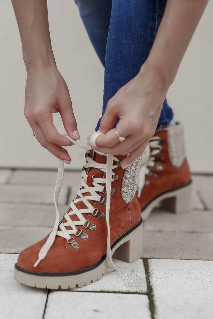 Kick your basic boots to the curb, and make room for these babies! The yarn trim and vegan suede make them super stylish, but the chunky tread keeps them functional, too.