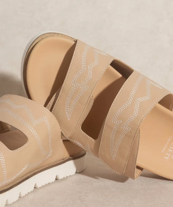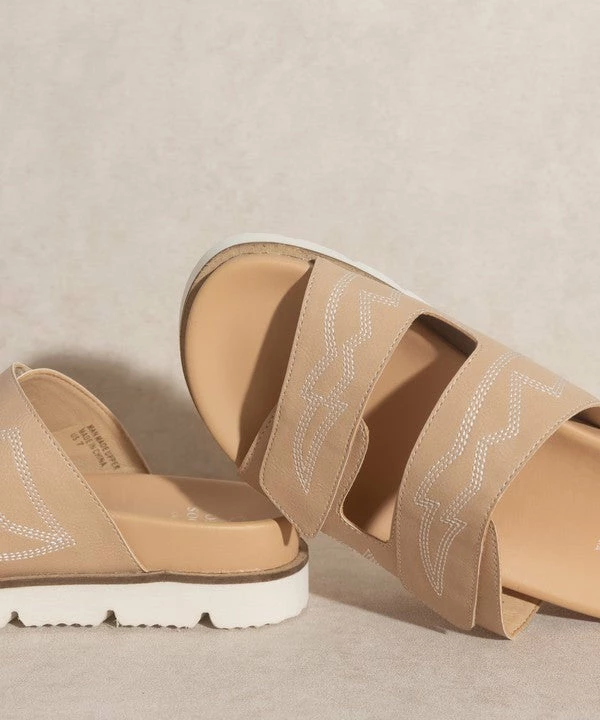 Classic double bands design with unique embroidery stitching.
