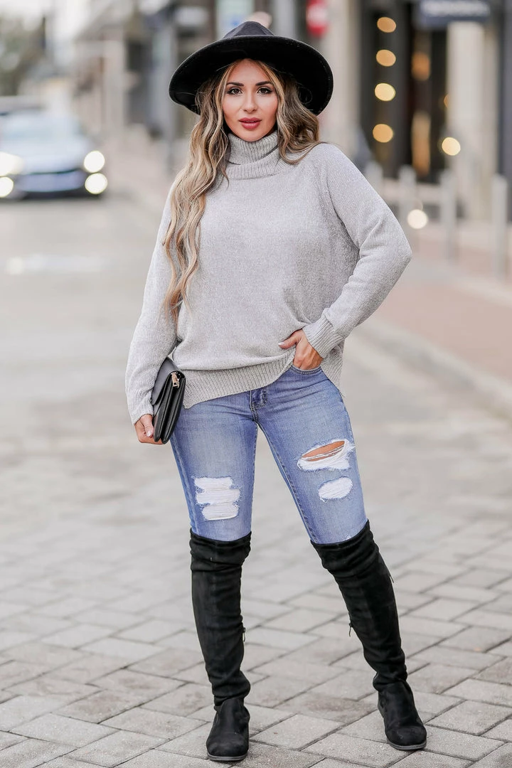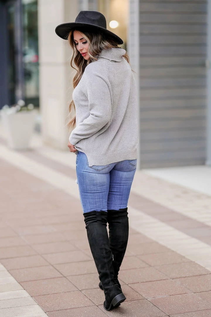 This sweater is sure to be a cold-weather favorite! With the rich chenille fabric and mock neck style, this sweater will keep you feeling cozy and looking cute.Â