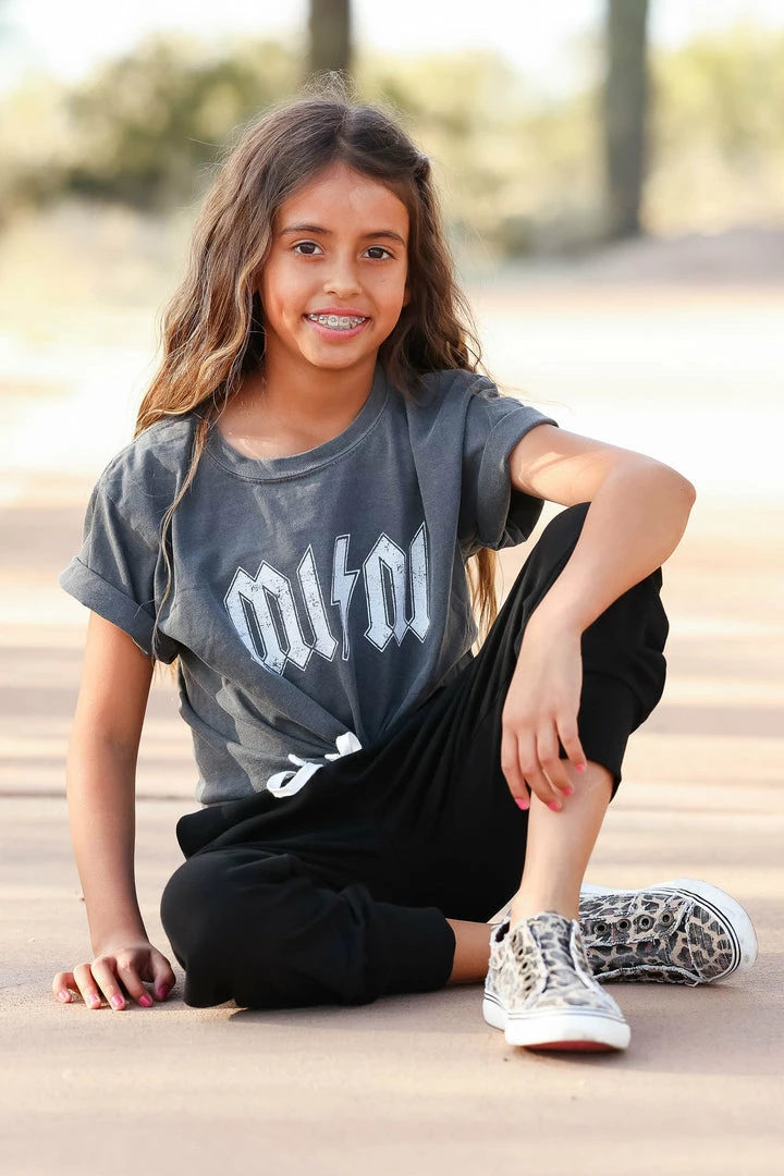 FIT DETAILS: Scarlett is 4’6, 55 lbs, usually wears a kids small and is shown wearing a kids small.