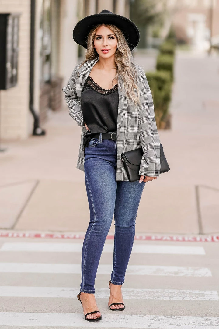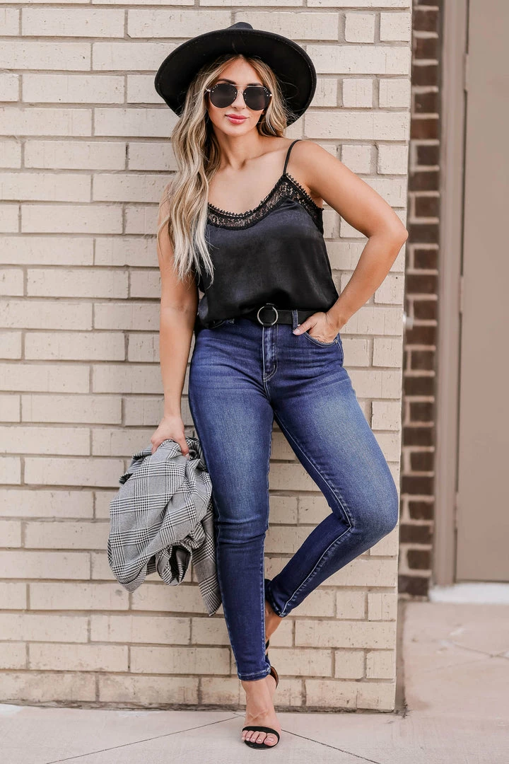 This cute cami will be the new light of your life! The silken bodice combined with the delicate lace trim creates the perfect top for any look. Wear with jeans for a casual feel, or dress it up with a skirt and heels!
