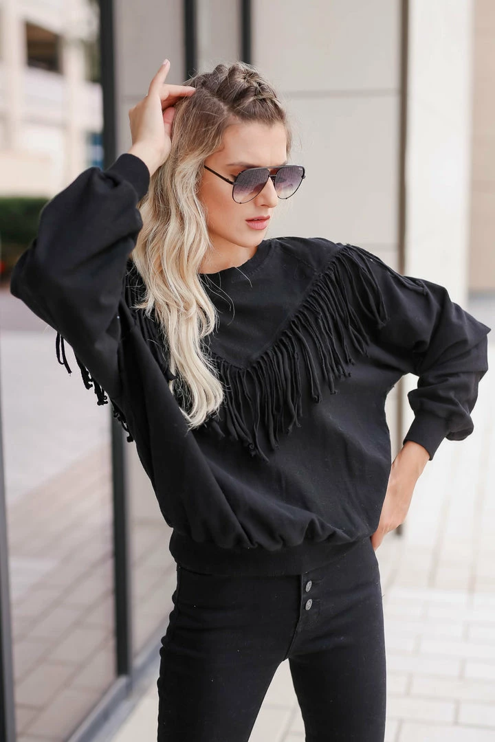 Fringe is in! Try out this fun trend without going too far outside of your comfort zone with the Enough for You Fringe Sweatshirt.
