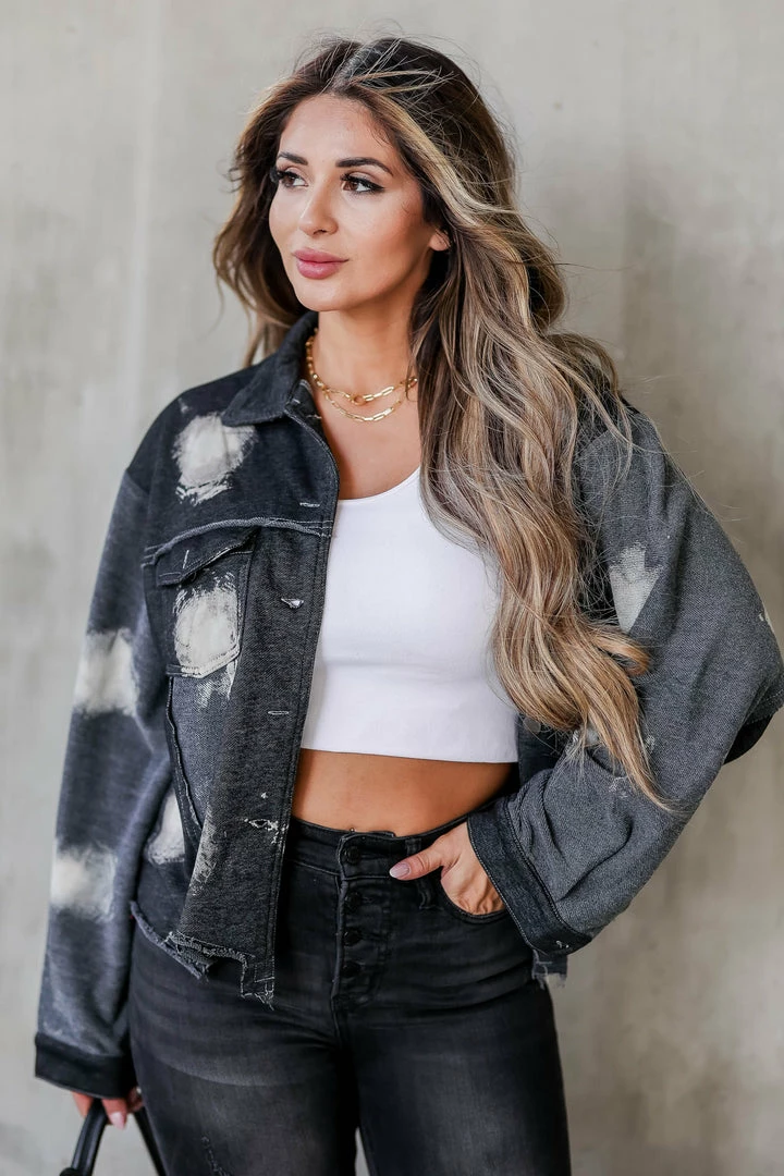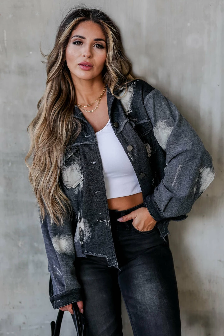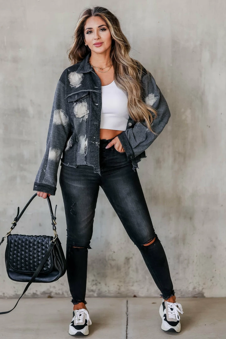 Feel electric in this cool and unique shacket! With the reverse fabric sleeves and acid wash pattern, this piece adds some serious spice to your wardrobe.Â