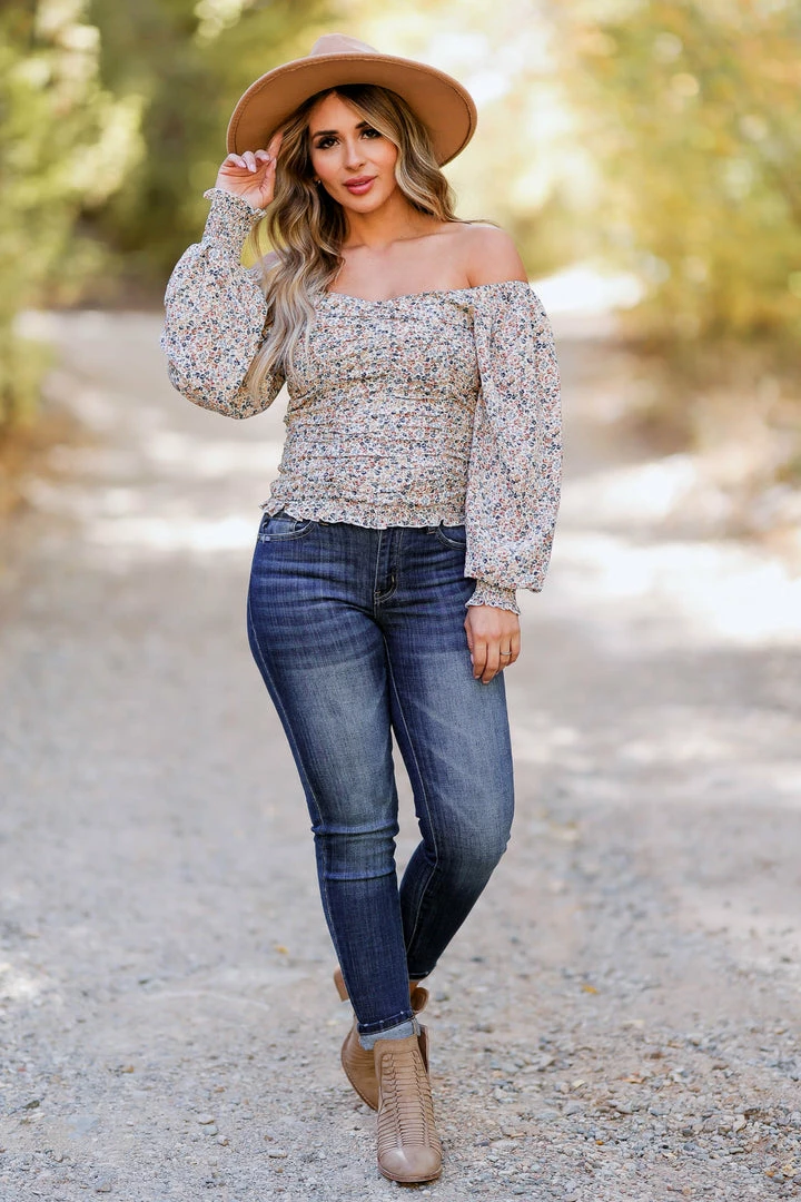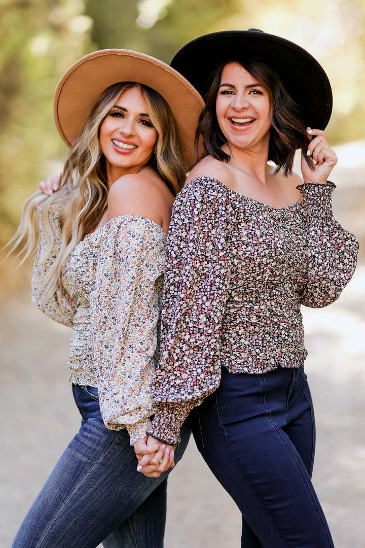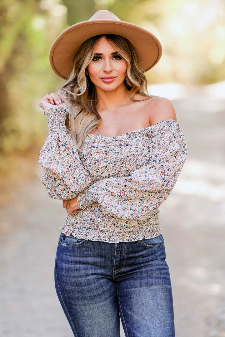 Live happily ever after in this adorable floral top! Wear it off the shoulder for a flirty, romantic look, or leave it on the shoulder for a classic neckline.Â