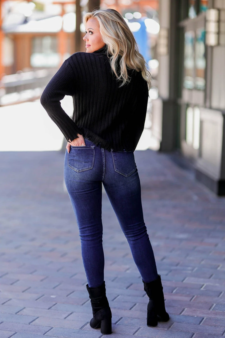 This cute sweater is exactly what your closet is missing! The simple ribbed knit goes with everything, while the distressed hem and cuffs keep it from being too plain.Â