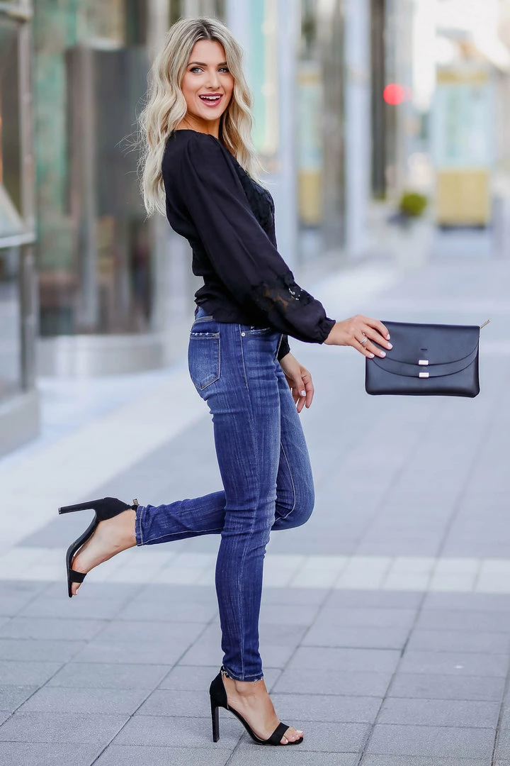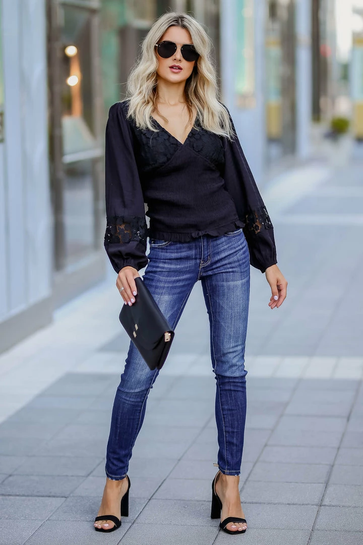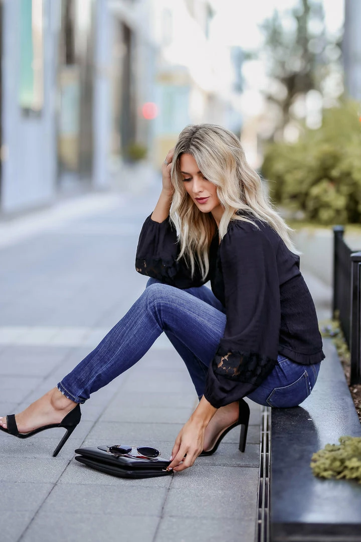Looking for the perfect top for a romantic date night? The Romance Me Peasant Top is the perfect choice! The smocked bodice and floral lace details are all you need for that “night out” vibe.Â