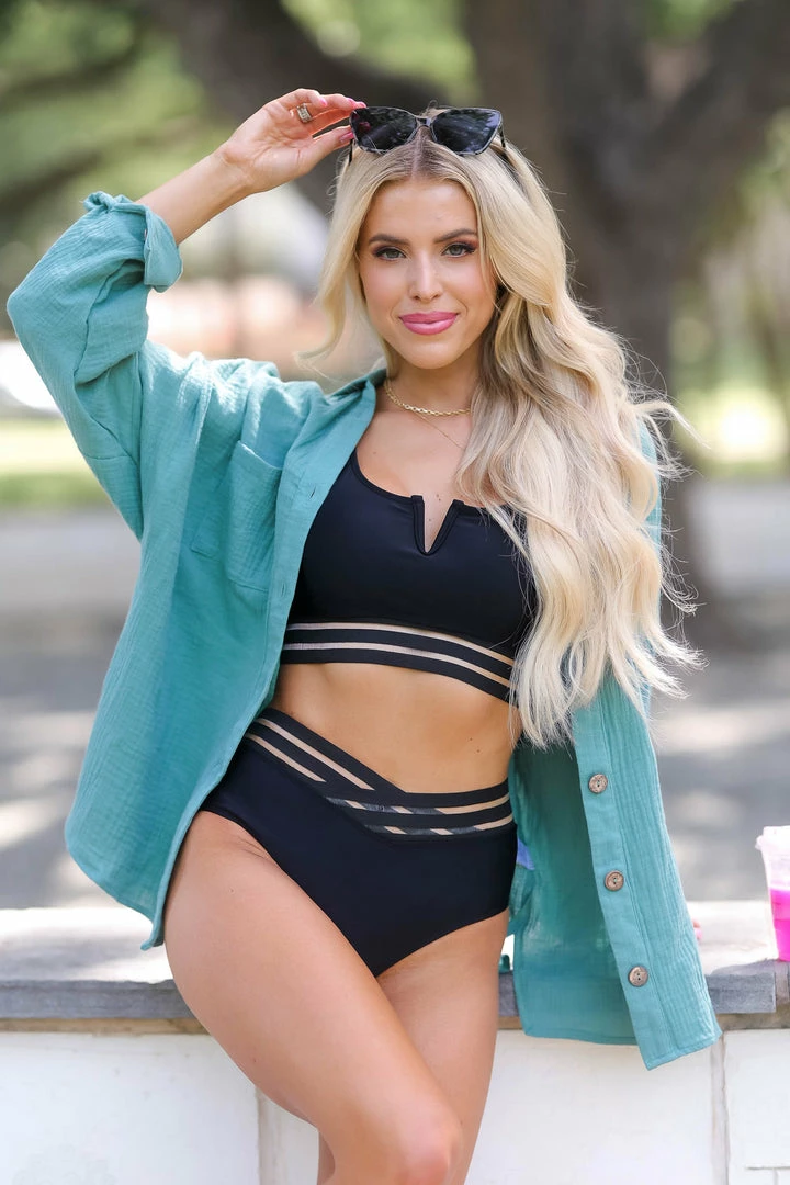This breezy button down brings a little sophistication to your favorite bikini and denim shorts. Leave it open for a cute coverup look, or button it to transform it into a chic outfit.Â