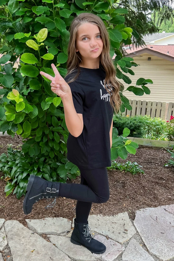 FIT DETAILS: Savannah is 4’9, 80 lbs and typically wears a size 10-12 in clothes and is wearing a large. *Fit is true to size.