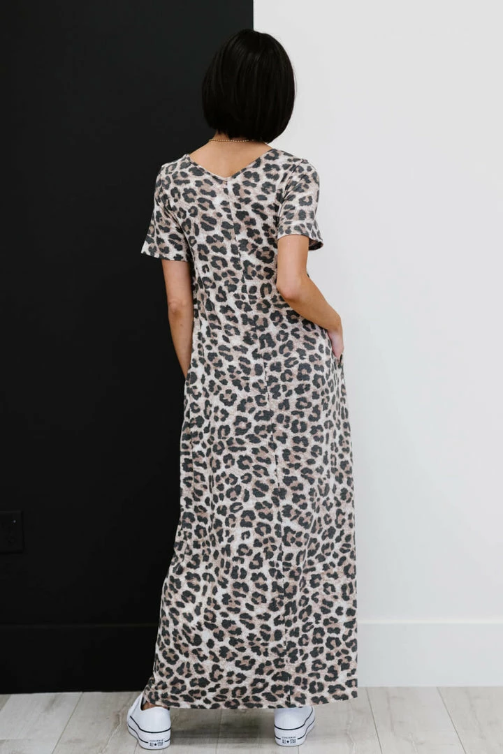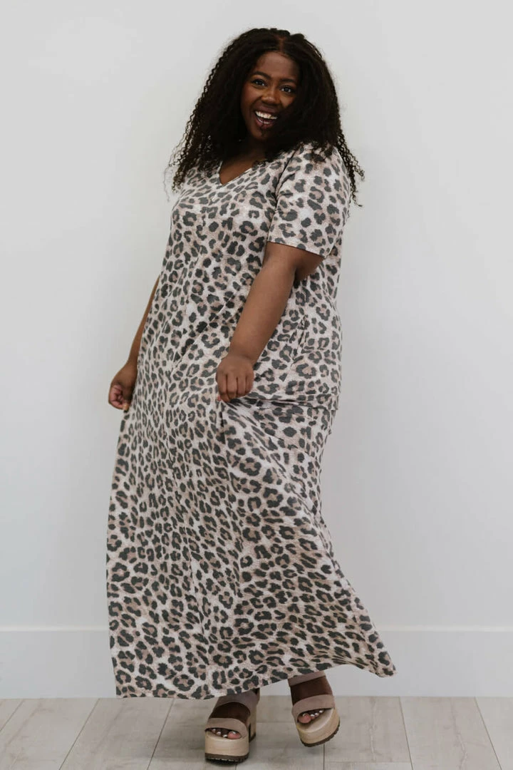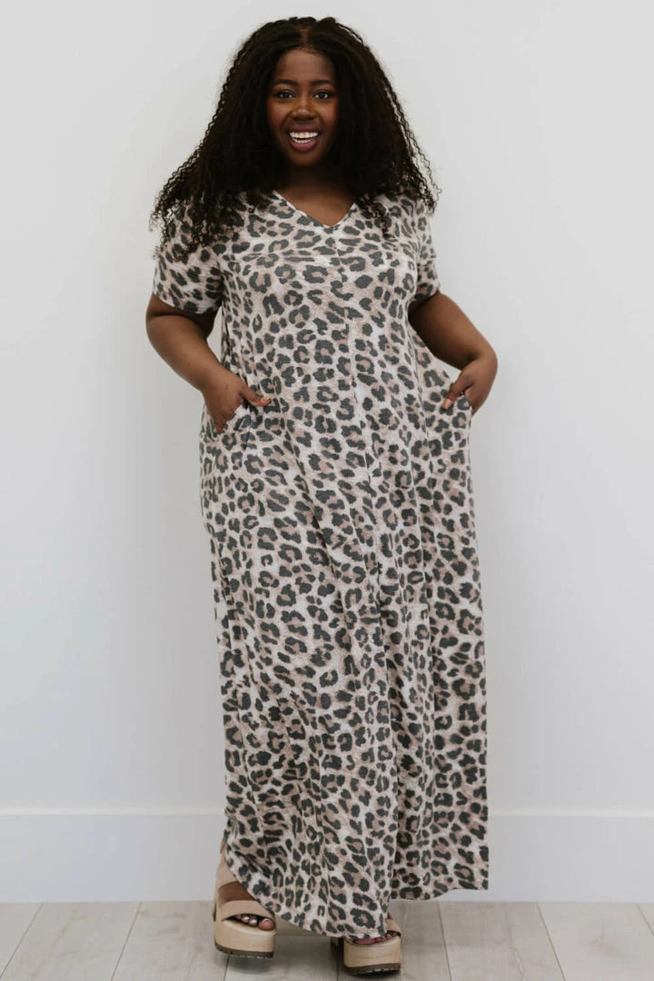 Bring out your wild side with this modern and casual leopard print maxi dress! The flattering v-neck and v-back design add shape to the ultra-flowy silhouette. The dress features pockets and touchable soft and stretchy fabric.