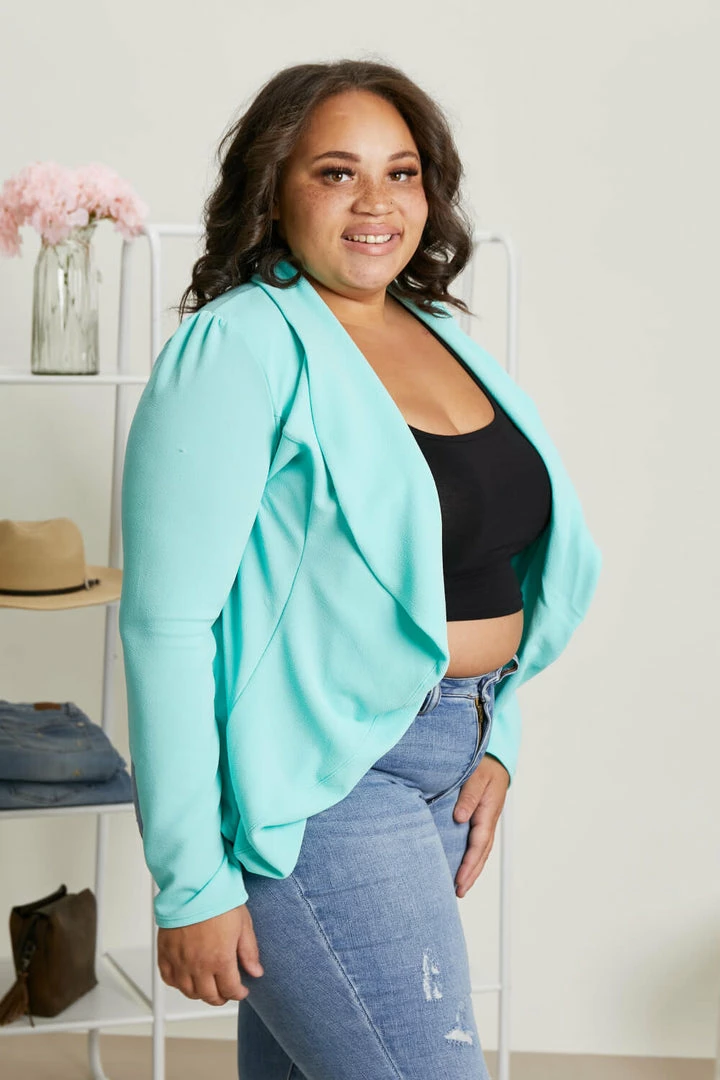 Whether you’re running late or not, this blazer jacket will elevate your outfit. The open front is perfect for layering over a statement piece.