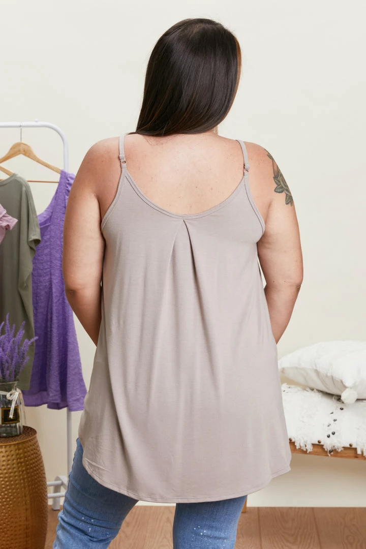 Flattering pleats decorate the neckline of this flowy cami, which would look so great paired with your favorite jeans. Wear it alone, or add a cardigan or blazer over the top for a polished look.