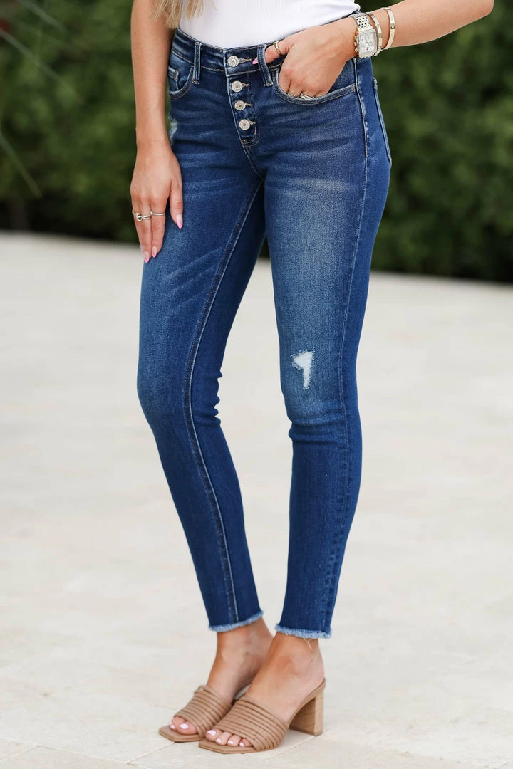VERVET, women’s ankle skinny jean featuring slight distressing, fading and whiskering to front, classic 5-pocket design and 4 button fly closure.Â